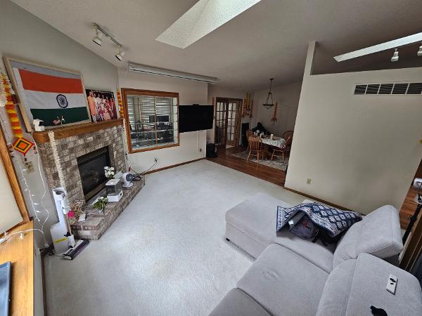 You'll share the kitchen, bathroom, and living spaces. The home is bright and airy with skylights and a cozy sunroom.