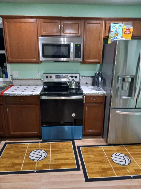 AC heat conventional oven microwave oven. Dishwasher refrigerator dining tables and chairs sofa in the living area washer dryer Garbage disposal