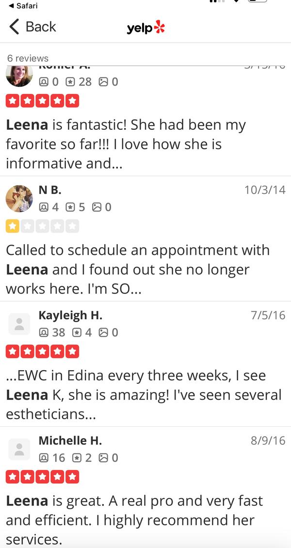 Worked at European wax center, Core power yoga and spa, Wax and lashes studio(wax it), Massage Envy, Skin Gevity face and body.......